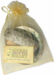 Herbs from the Heart has a wonderful Sacred Smudging Kit, which includes not only White Sage but also Palo Santo and a beautiful shell for burning them.