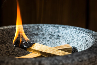 Burning particular plants or herbs within a vessel (such as a bowl or dish),
